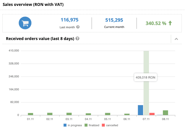Vanzarile unui client demonstrează puterea unei strategii eficiente pe eMAG. Colaborarea cu noi aduce creșteri consistente și o prezență optimizată. Rezultatele nu mint.